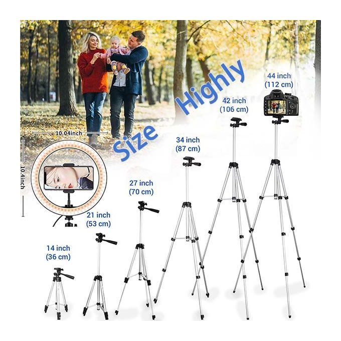 tripod:The 360-degree rotatable design is the best choice for outdoor photography. Retractable design, foldable for easy carrying. Made of high-density aluminum tube, strong and durable. Supports digital cameras, card cameras and smart phones. Add LED ring lights to make live video and recording studios as easy as possible. With a non-slip tripod, you can take many beautiful photos stably. It is specially designed for photography enthusiasts to help them take good scenes or group photos without holding hands for a long time.