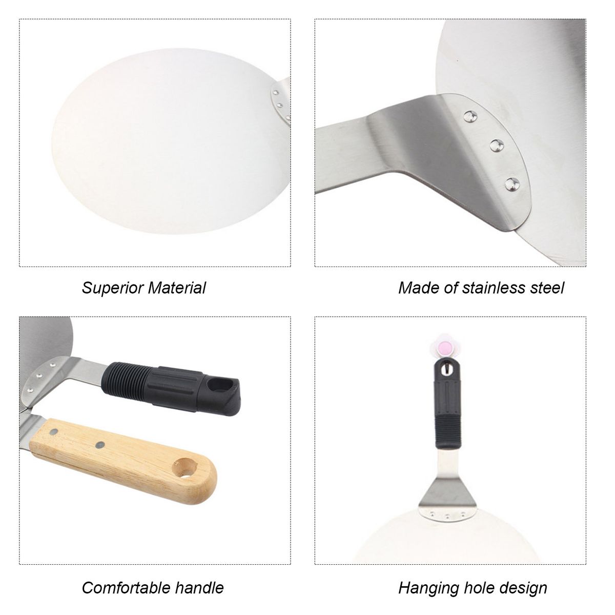 【ROUND DESIGN】This pizza shovel blade could make any size pizza or bread you want. This proper thickness edge for ease in lifting food from the oven or pan to the serving tray.