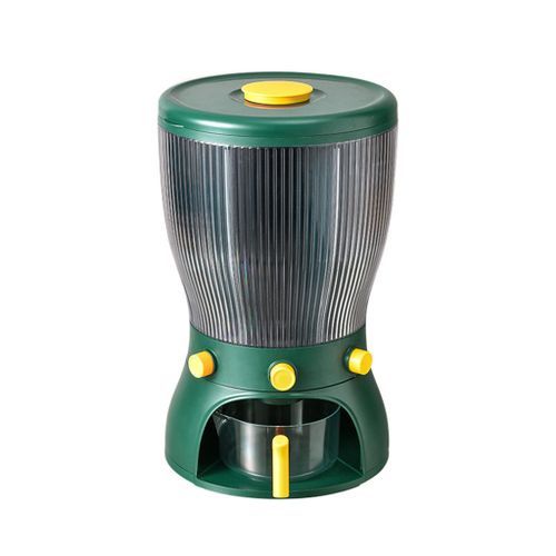 The rice bucket can be rotated 360°, which is convenient for dumping without moving. The top cover can be removed, which is convenient for adding grain and adding more convenient. This cereal dispenser made of high-quality food grade environmentally friendly PP material. No pollution, high permeability, you don't need to worry about the safety of the material.