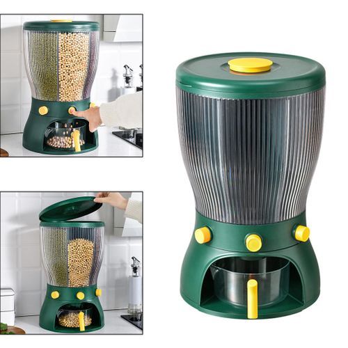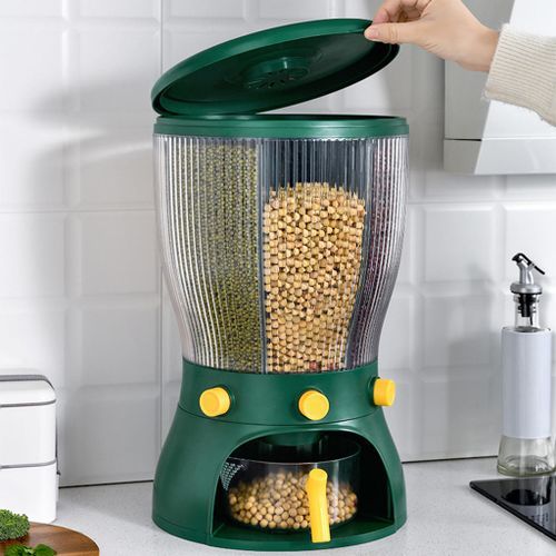 This food storage container can automatically quantify rice and produce whole grains. The round button can be pressed with one key to intelligently quantify the rice and grain or any other food. This container has a good seal to block the moisture in the air, to ensure the drying of the particles, so the grain is guaranteed to be fresh and healthy.