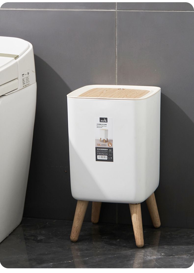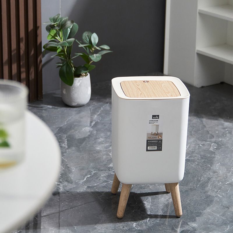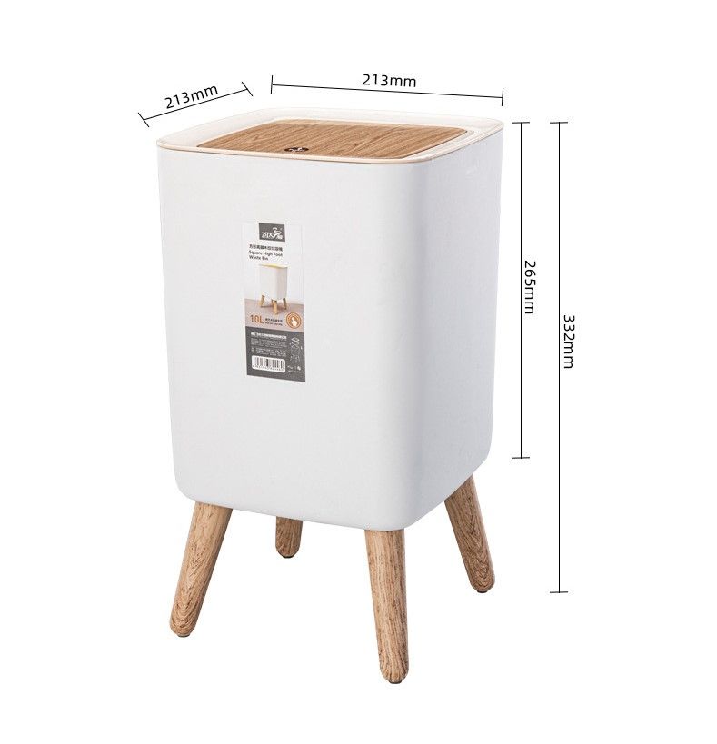 One (10L) High-footed large-capacity square wood-grain Pop-Up Trash-Can