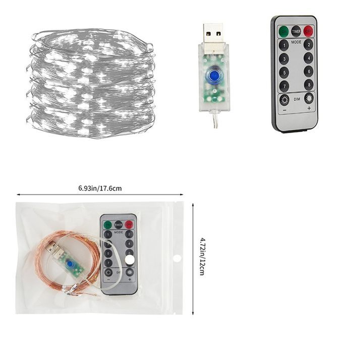 10m 100 String Light Remote Ontrol USB O Er Wire Hristmas String Light-white