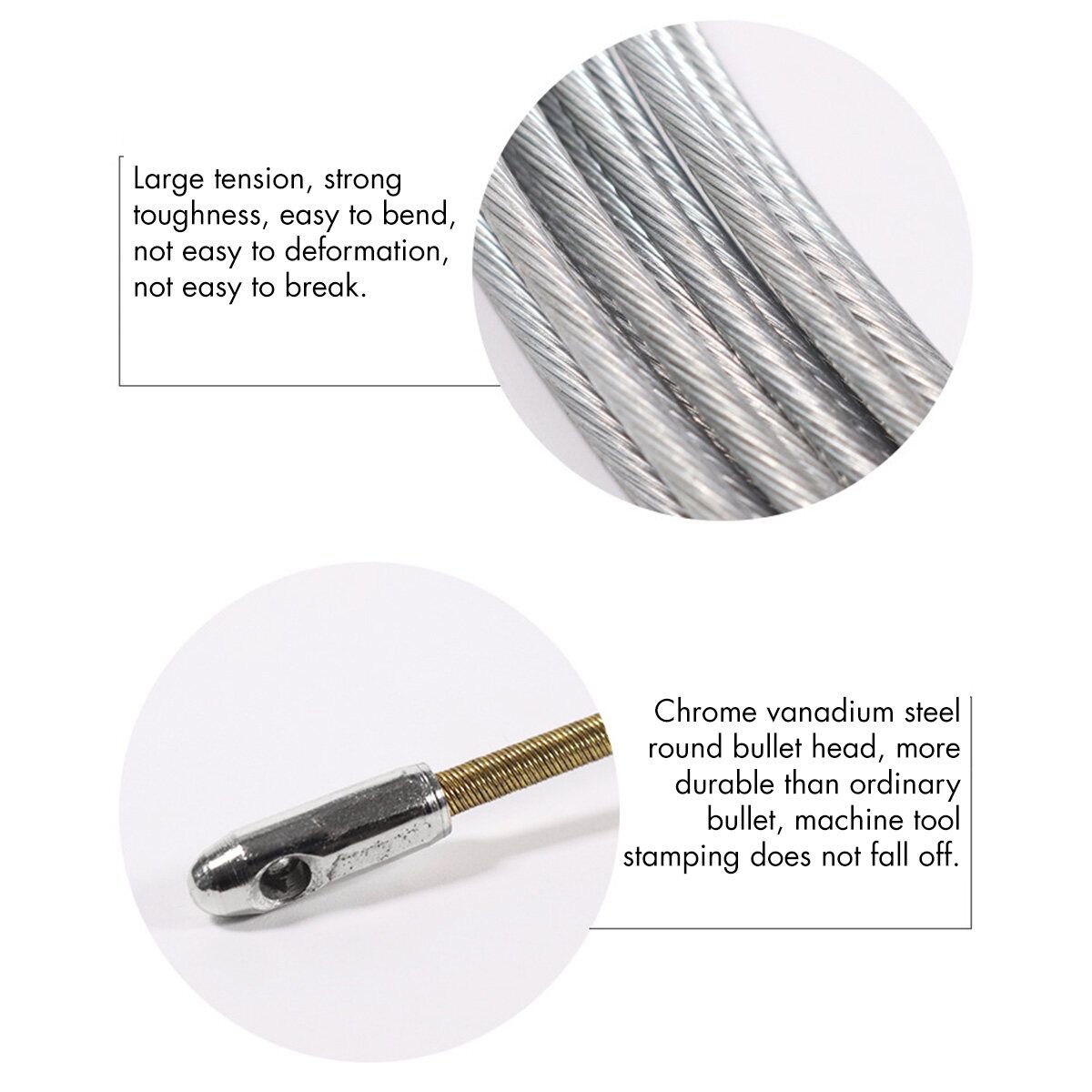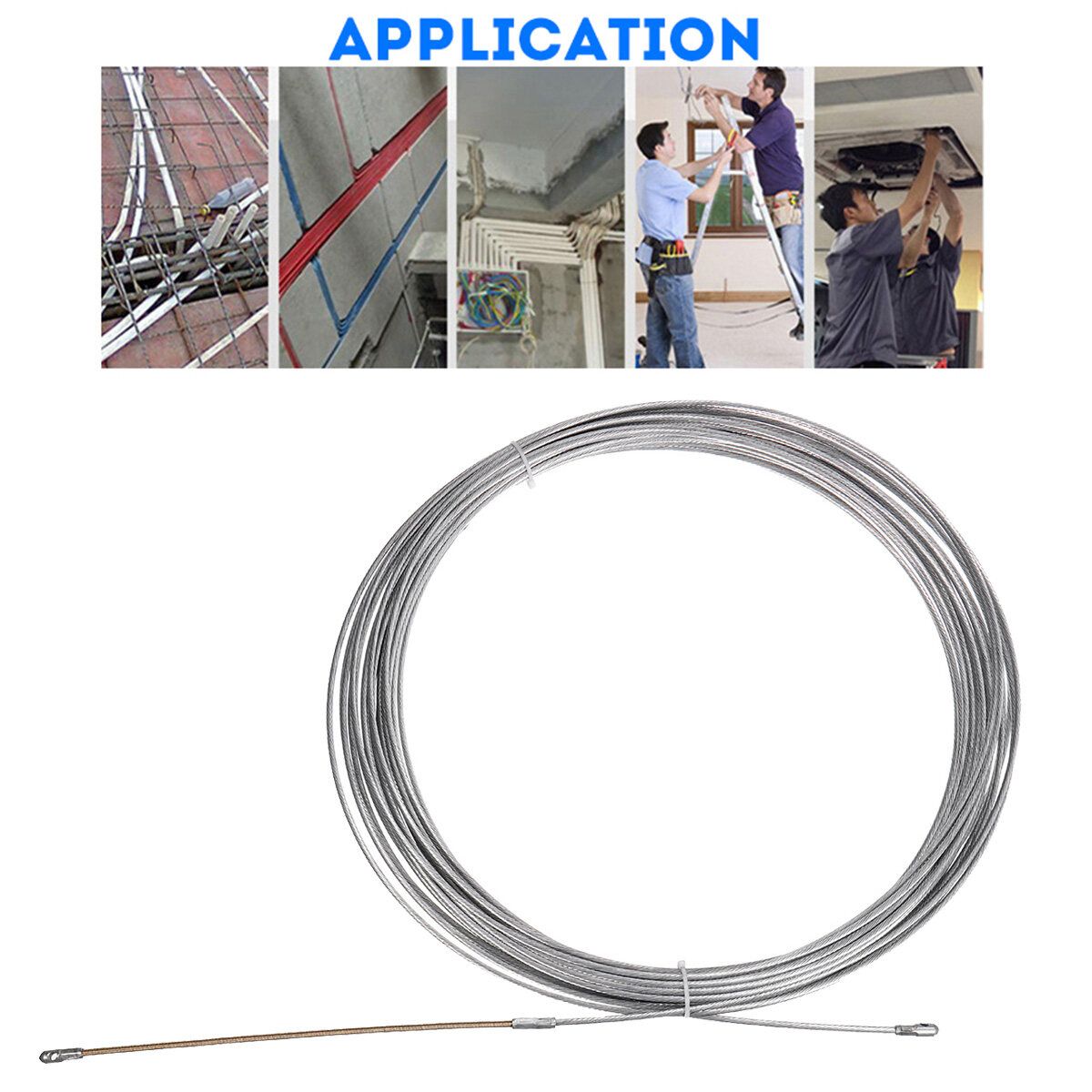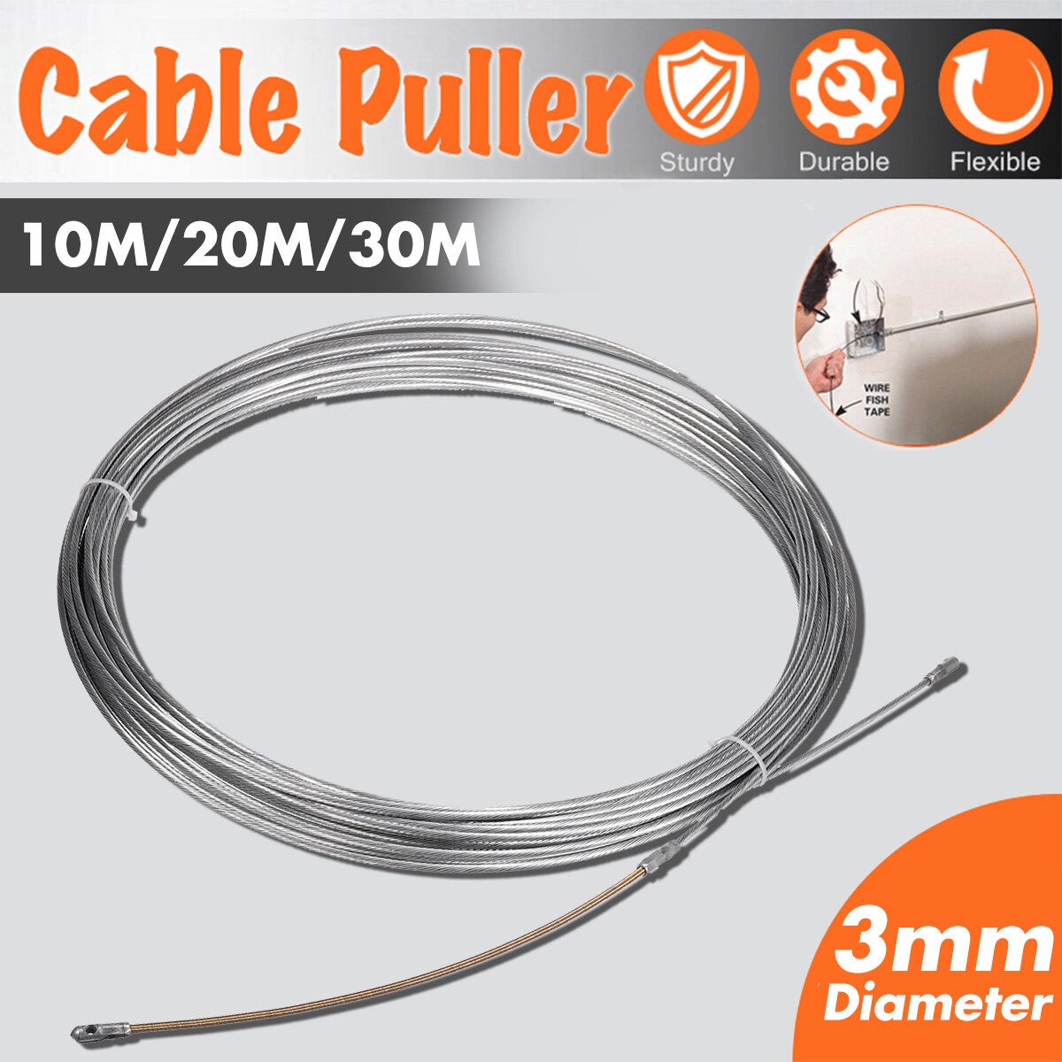 10M/20M/30M Cable Push Puller Spring Steel Electrical Wire Tool Fish Tape 3MM