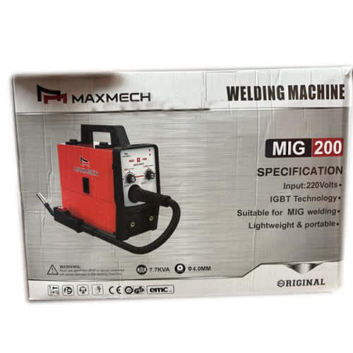 Quality 1.0mm Mic Maxmech Welding Machine Mig 200The MIG 200 Welding Machine is a versatile tool designed for Metal Inert Gas (MIG) welding, offering an output power of 200 amps for various applications. Its multi-process capability allows for Stick and TIG welding. With adjustable voltage and amperage settings, it provides flexibility for welding different materials. The machine features precise wire feed control and often includes a digital display for accurate parameter adjustment. Portability is a key feature, enabling easy transportation and maneuverability on work sites. A duty cycle suitable for light to moderate tasks ensures efficient operation. Thermal overload protection prevents overheating during extended use. Users should refer to the manufacturer's specifications for k