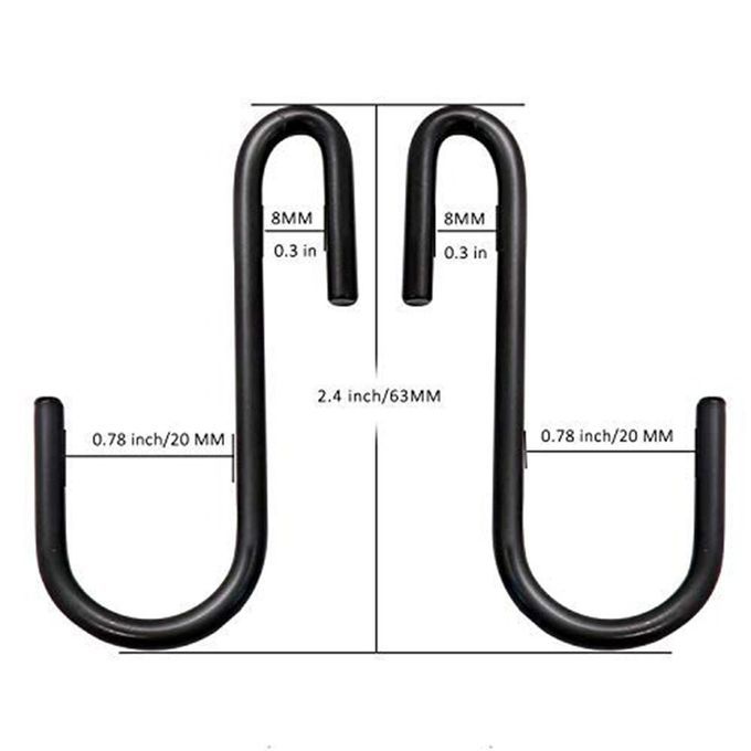 These S-shaped hooks are sturdy and durable, suitable for use in losets, storage rooms, bathrooms, garages, workshops and offi es, or in outdoor hanging baskets, bells or lanterns.