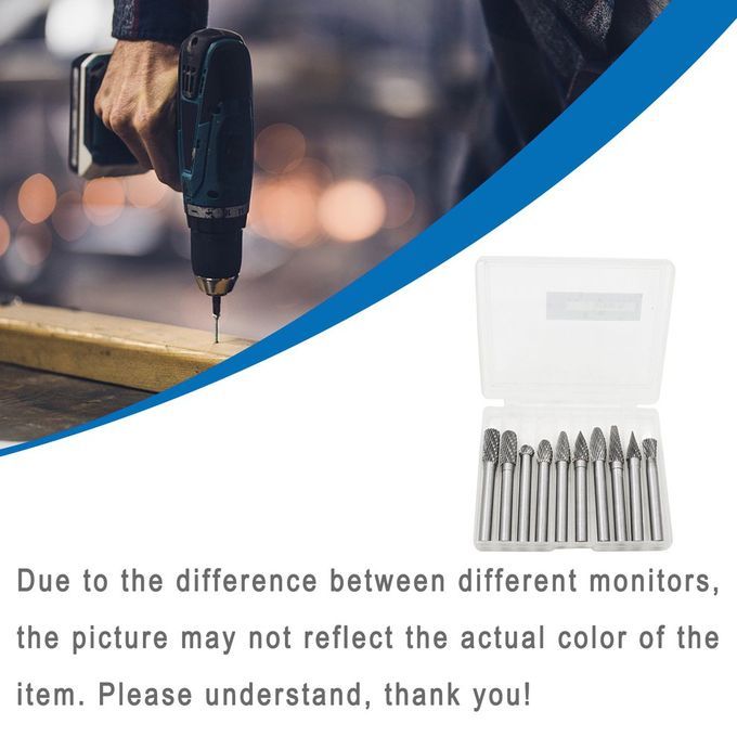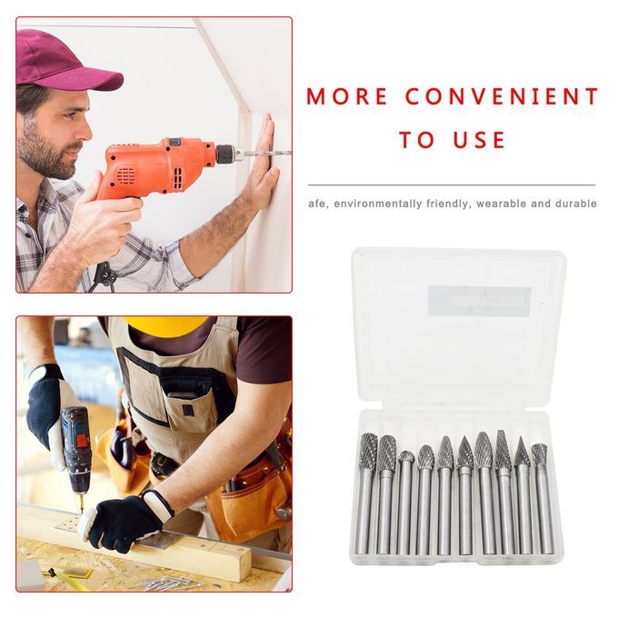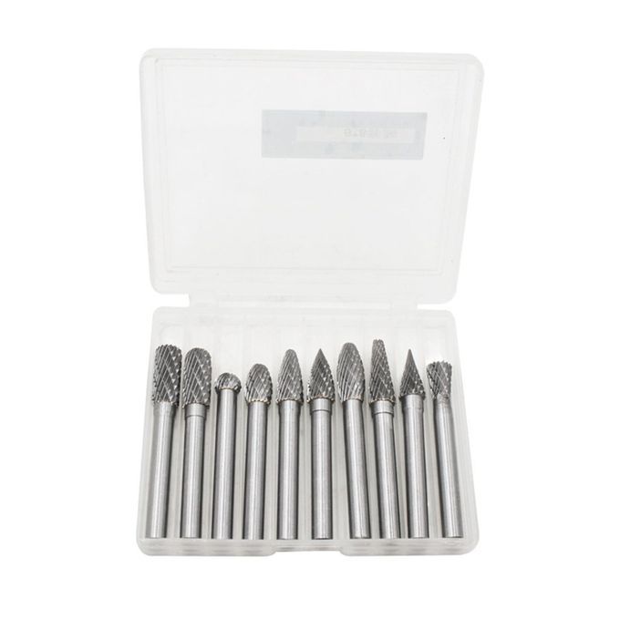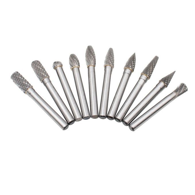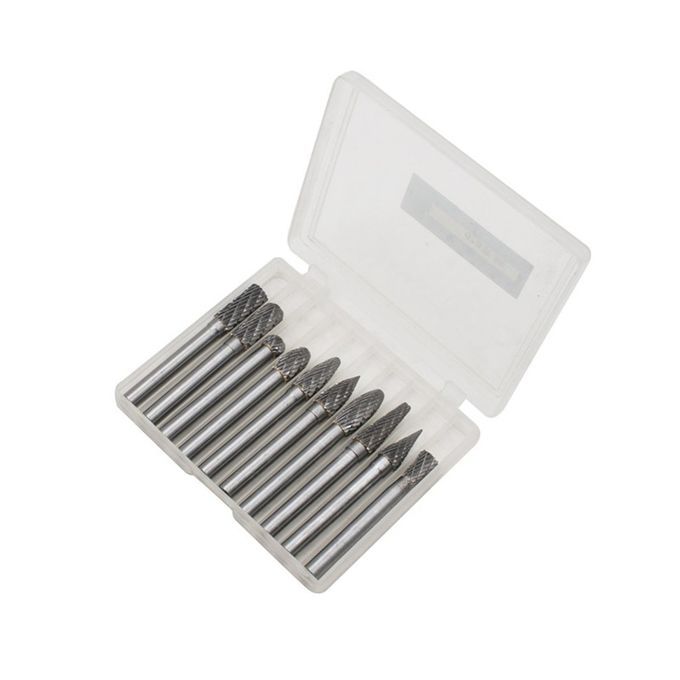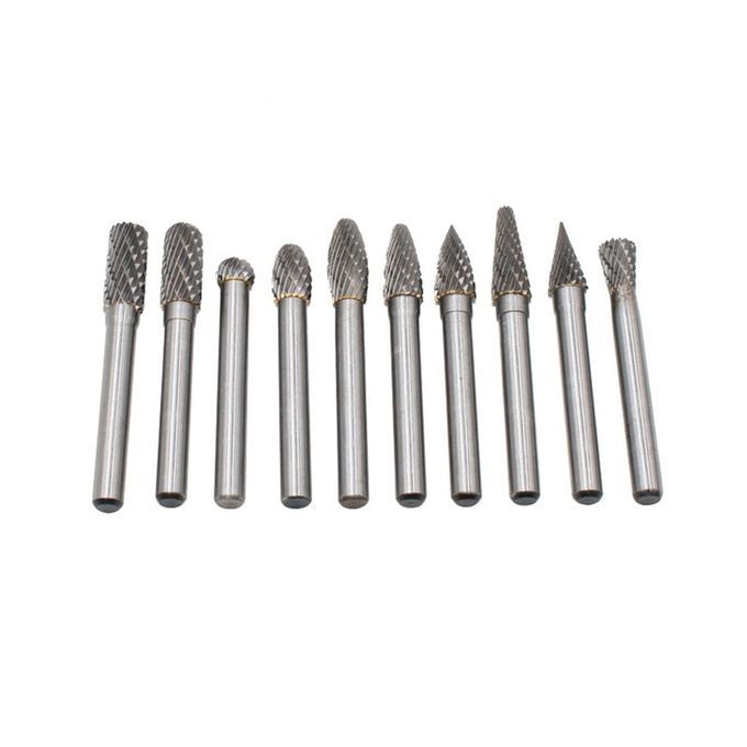 10p S/set Arbide Rotary File Set Double Grain Tungsten Steel Rotary File-silver