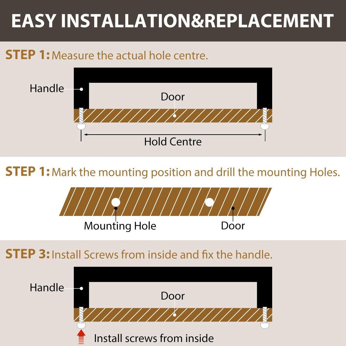 Easy to install:Use the gold cabinet handle to mark the position for the screws before firmly attaching.