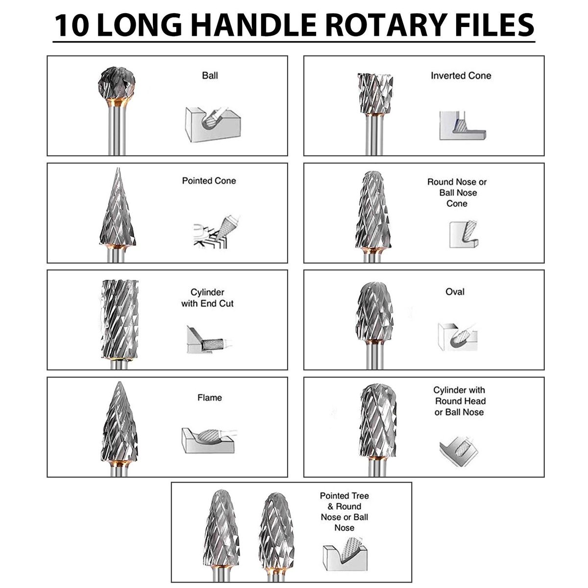 10 x Tungsten Carbide Rotary Burrs