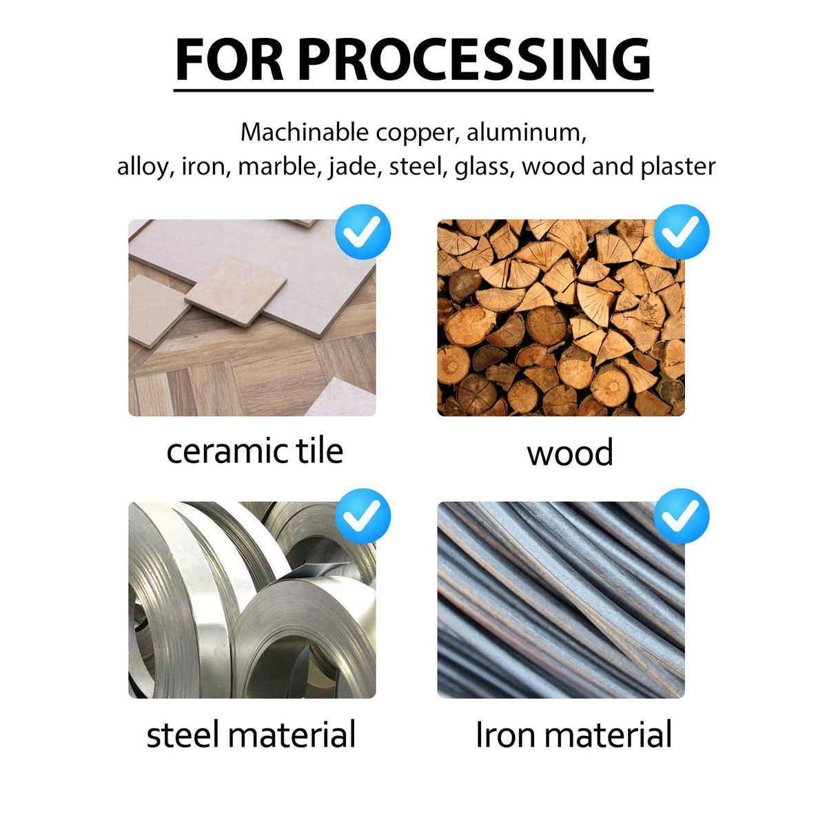 High performance on processing copper, aluminum, alloy, iron, marble, jade, steel, glass, wood and plaster etc.