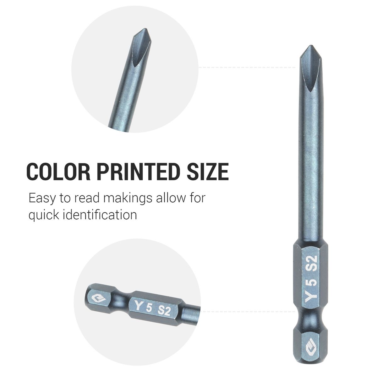 Industrial Grade Material -- Premium heat-treated S2 alloy steel bits for superior hardness plusmn; HRC58, high torque, good toughness that reduces wear outs and ensures maximum durability.