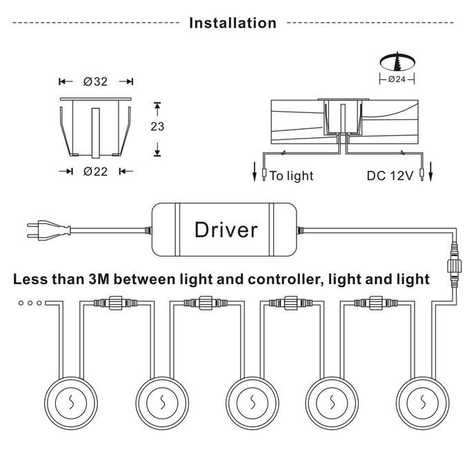 Per deck light size: 2.3 * 3.2cm / 0.9 * 1.3in (H * D)