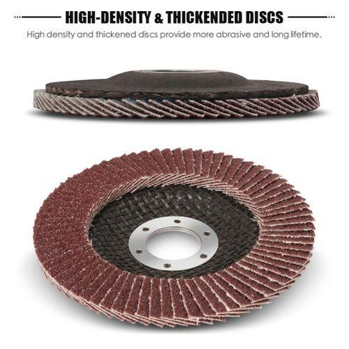 [120 GRIT FLAP DISCS]120 grit fine flap disc is perfect for finishing work on surfaces like wood. NOTICE: Please Wear Protective Equipments Before Use!
