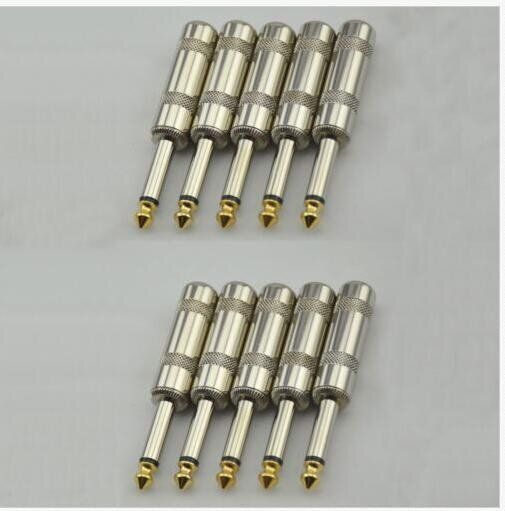 1X 10PCS 6.35mm 1/4'' Mono TS Audio Male Speaker Guitar Cable Connector Plug JACK