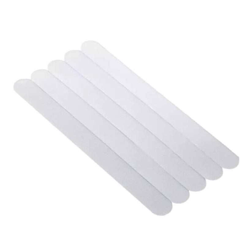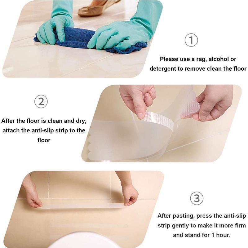 Easy to peel and attach: Each nonslip safety tread includes a strong adhesive layer to ensure a secure installation. Safely use on any indoor surface, including fiberglass, acrylic, tile and more. The self-sticking strips are also removable and will not mar the surface.