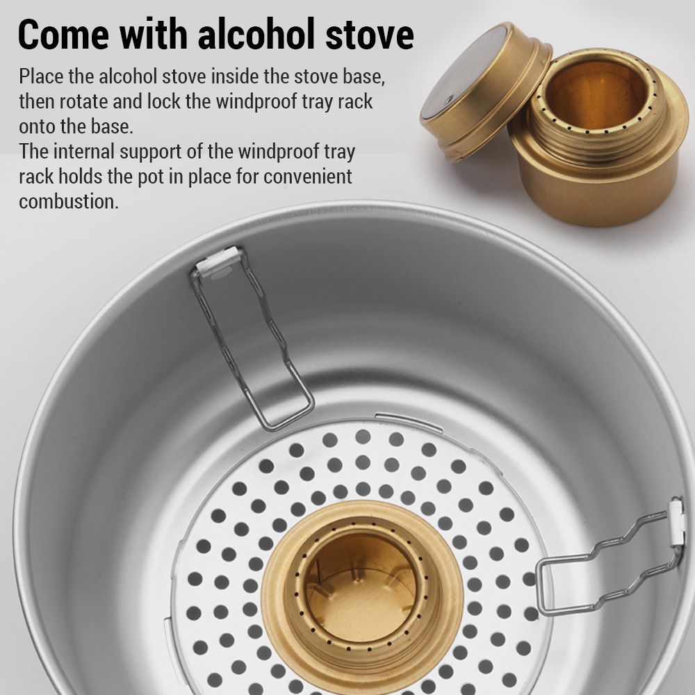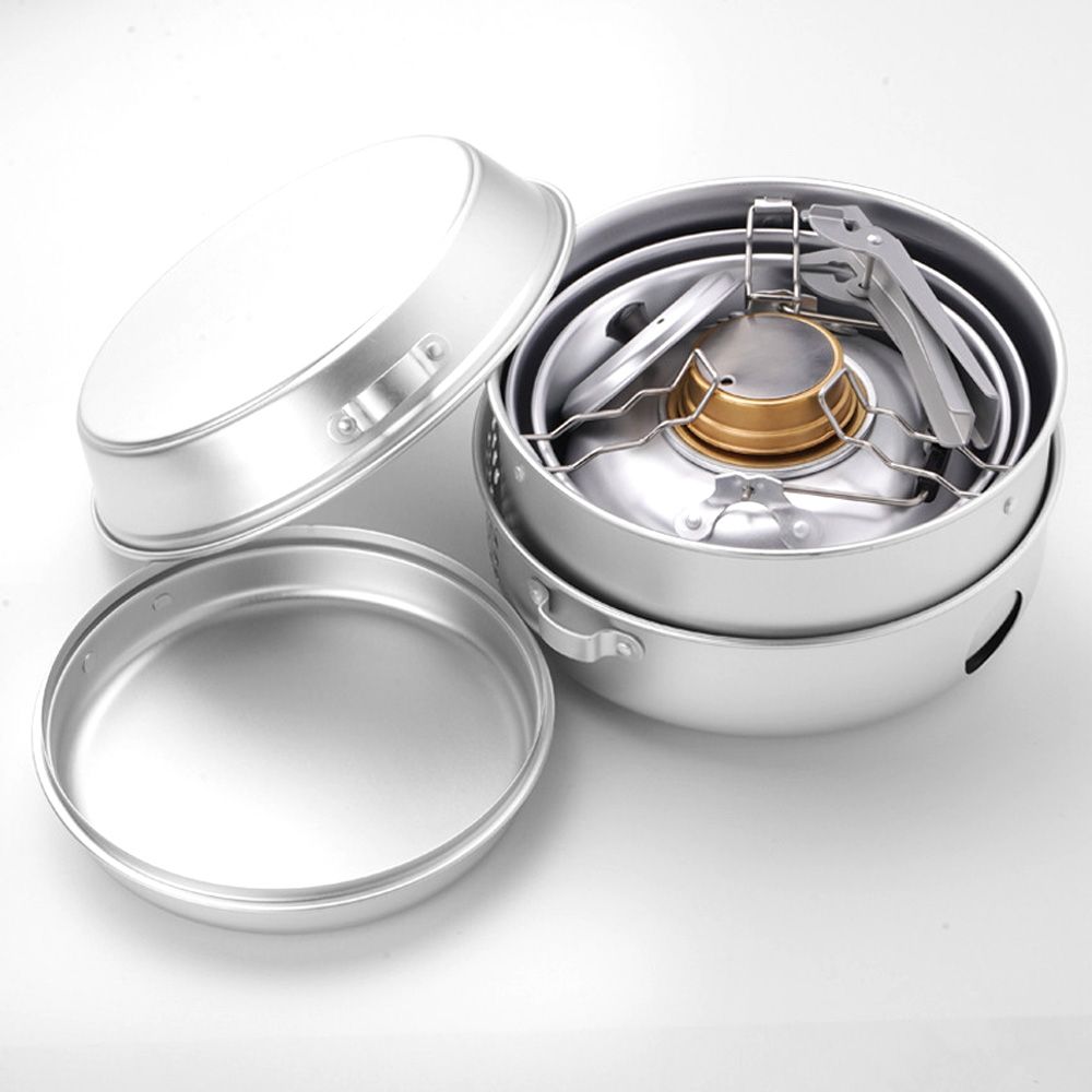 With the inclusion of an alcohol stove, this camping cookware set offers versatility for various outdoor activities.