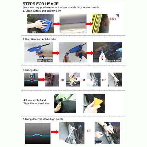 Widely Used For The car ,motorcycles, metal plate,refrigerators, washing machines and other dents,9pcs different shapes head tips suitable for different dents.