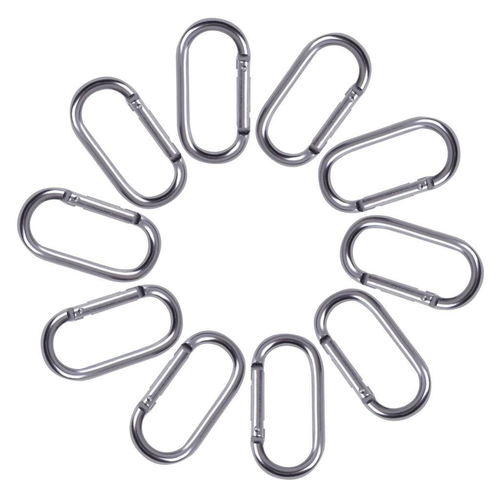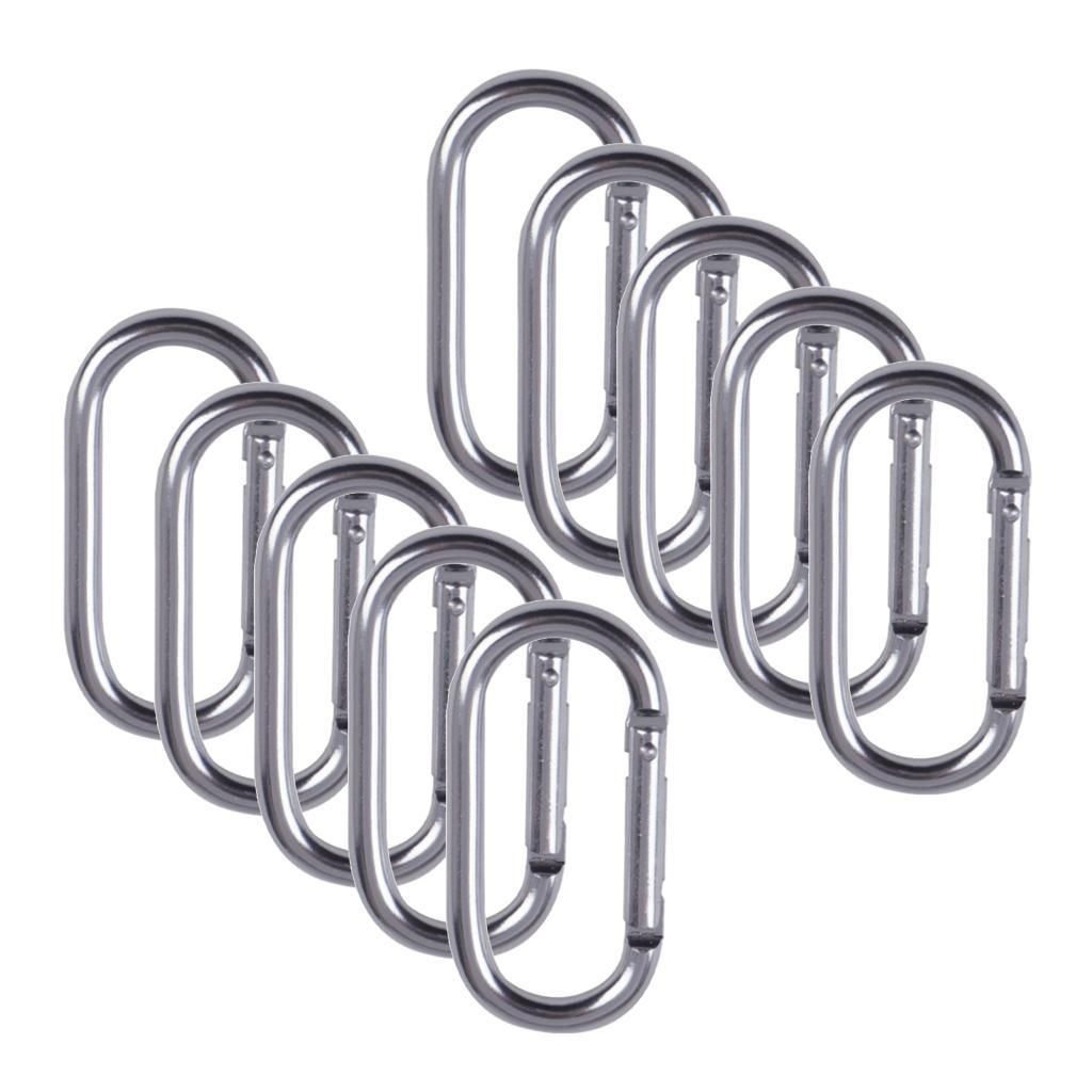 Pack of 10 pieces carabiners snap clip hook made of high quality aluminum alloy, lightweight but high strength, strong Anti-slip design, a combination snap locking system of screw and nut.It can be used in your daily life as a keychain or lock.Great for carabiner, camping, hiking, swing, hammock, punching bag and outdoor activitiesNote: Item need to press a few times before using it.