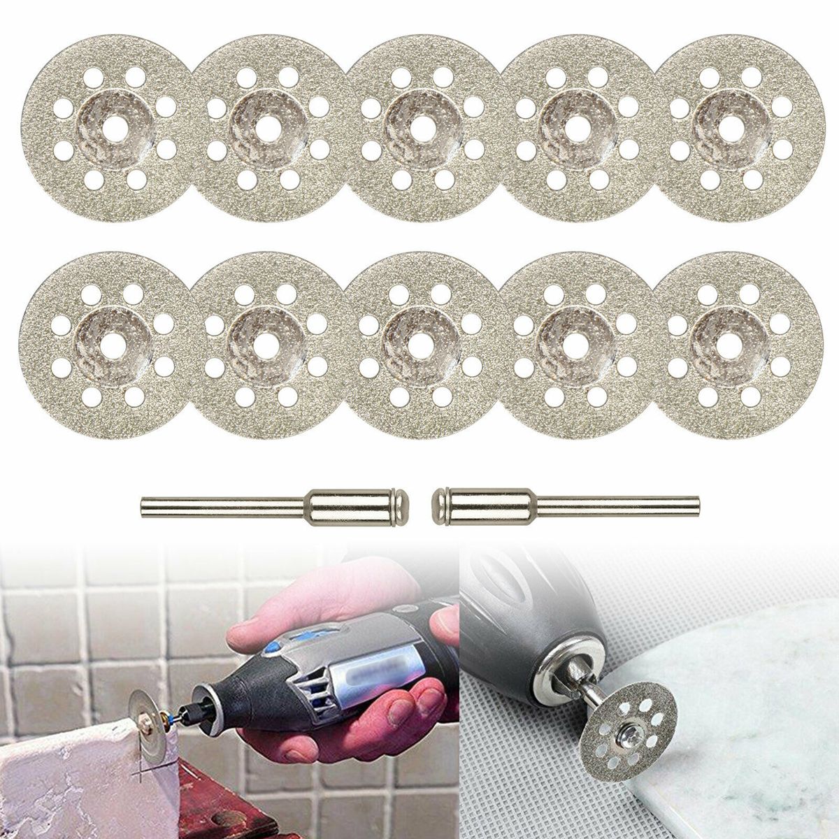 10pcs cutting bladings with 2pcs connection shanks.