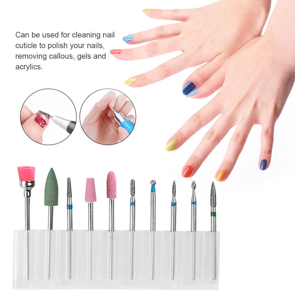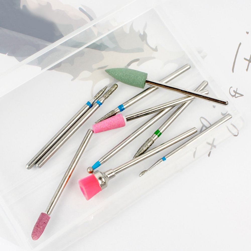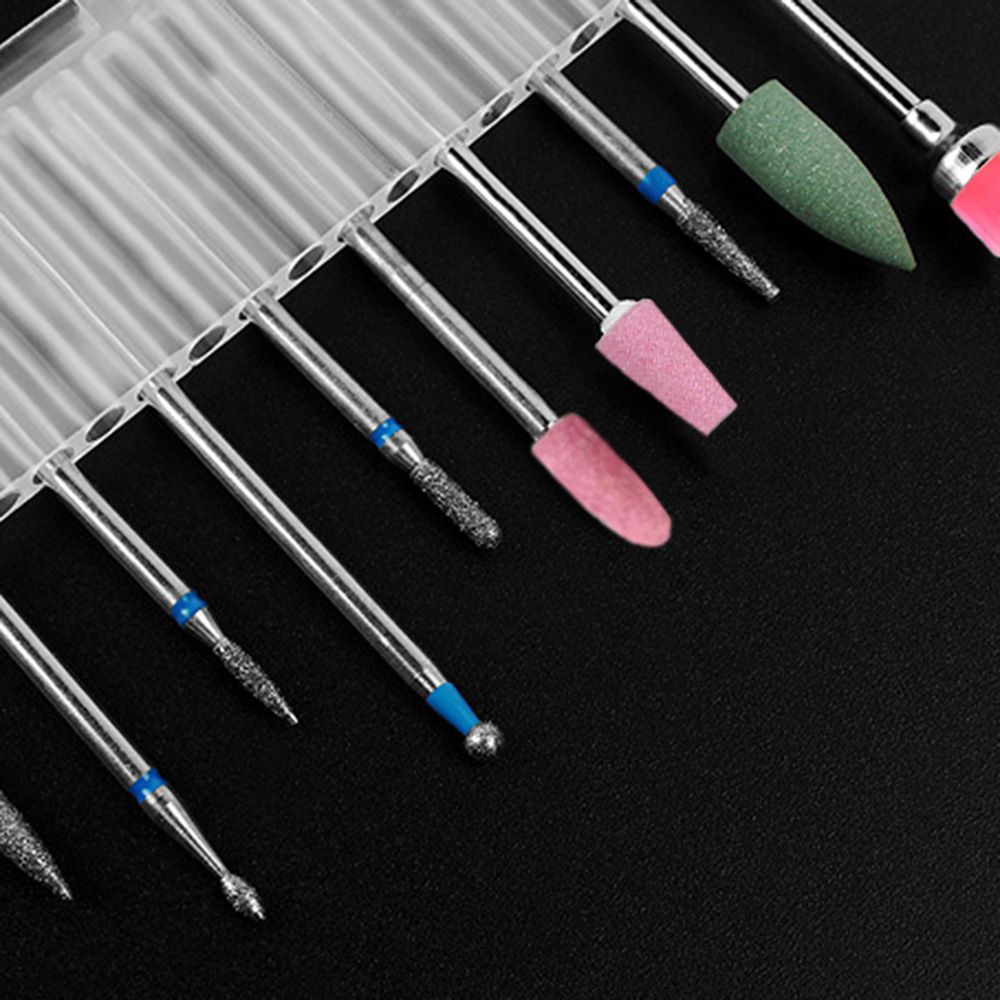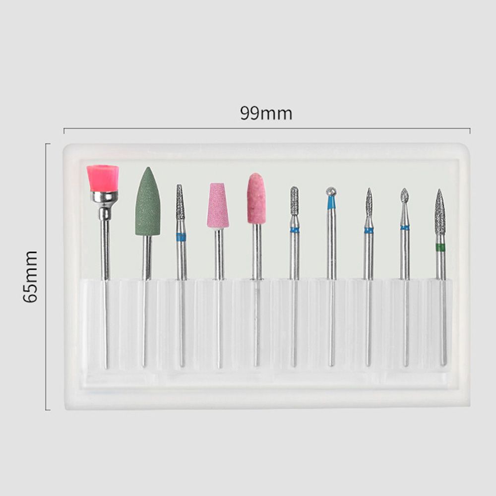 The Nail Drill Bits Set contains stone cuticle bits, diamond bits and nail drill brush, various shapes and sizes in 2.35mm meet your needs.