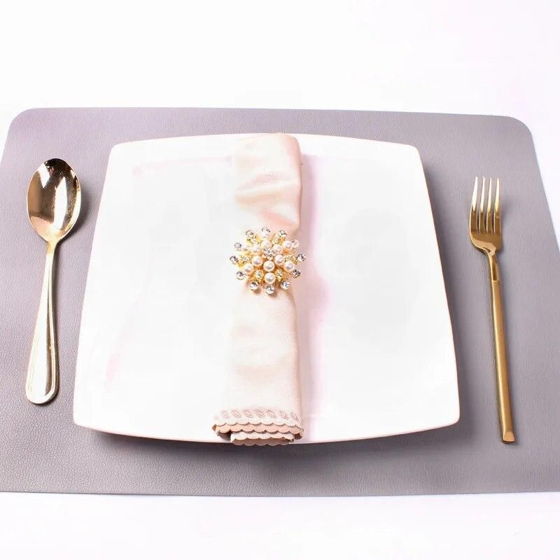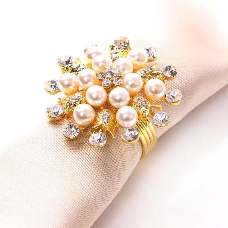 Buy 10pcs European luxury hotel mouth cloth ring pearl rhinestone flower type napkin ring tableware table accessories in Nigeria