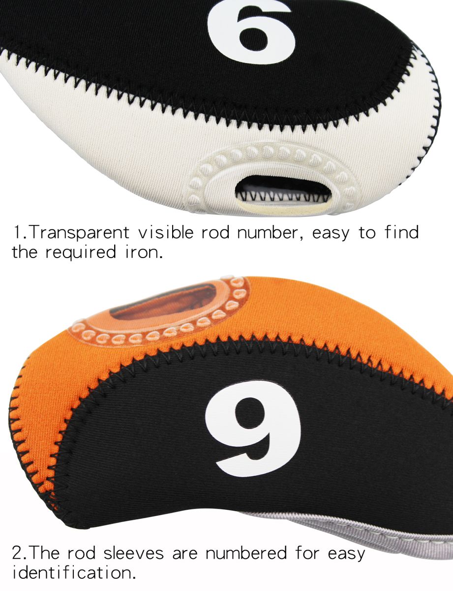 1 * 10pcs Golf Iron Head Covers Neoprene Transparent Window