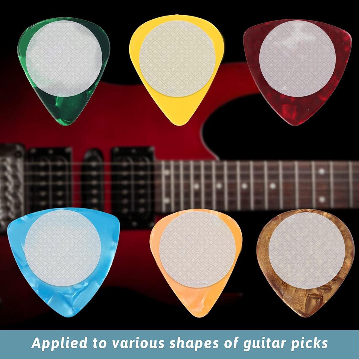 [High Viscosity, No Residue]:High quality self-adhesive backing ensures that grips will not slide on the guitar picks, and there is no residue when it is removed,Nice Using Experience for You:it can also stay on the pick for a long time, not easy to slip down, giving you a satisfactory use experience.