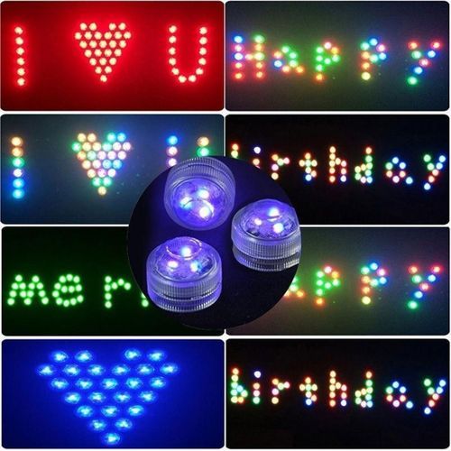 Features:Built-in SMD2835 super bright LEDs, RGB multi-color allows you to create a brilliant effect.Waterproof design, you can put this in to a vase or swimming pool to create a beautiful ambient.Comes with a remote controller, provided 4 light mode and 13 different colors for your to choose.Long working time, it can run 12 hours with 2pcs CR2032 batteries, low consumption and reusable.The housing made of high quality ABS, abrasion resistant and durable.Perfect for lighting up vases, bowls, or any water filled containers. Ideal for decorating wedding, bar, party, garden, swimming pool, vases, etc. Specifications:Material: ABSLight Color: RGBLED: SMD5050Remote Operate Distance: 10mBattery: 2 x CR2032 (not Included)Light Dimension: 30 x 22mm (D*H)Remote Dimension: 87 x 40 x 7mm (L*W*H)