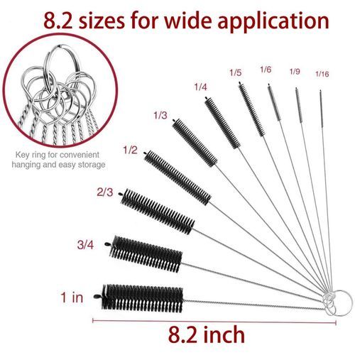 Long Straw Brush, Nylon Pipe Tube Cleaner 20CM 10 Different Diameters Set of 10