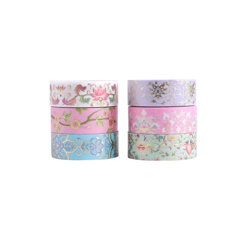 10pcs/Lot Golden Foil Flowers Washi Tapes for Scrapbooking Diy Bullet Journal Masking Tape Stationery Decoration Supplies