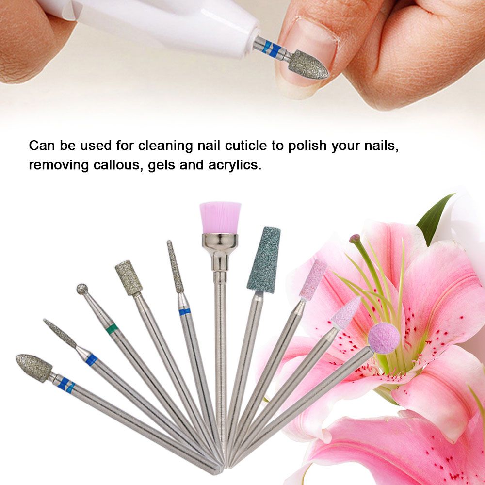 Contains stone cuticle bits, nail drill brush, various shapes and sizes in 2.35mm meet your needs.