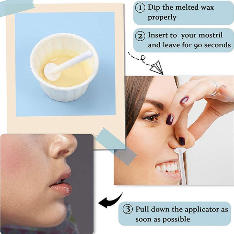 3. Wait for about 30 seconds, until the wax body becomes hard. Ar cooling, hold down the sides of the nose and pull out the nose hair stick in one breath. Try not to hesitate to pull it out quickly.