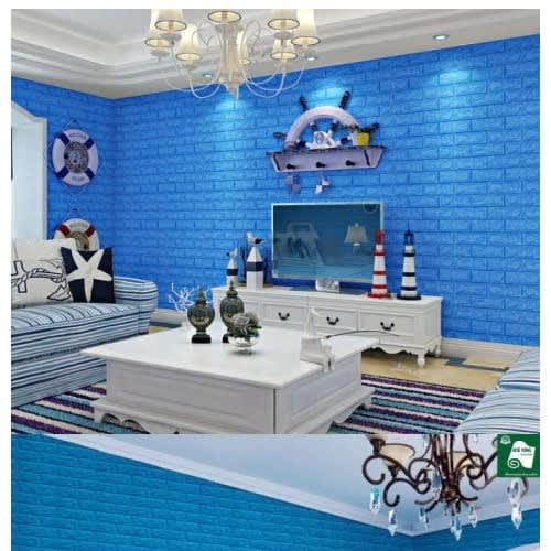 Buy 10pcs Pe Foam 3d Self Adhesive Brick Wallpaper Sticker - Blue in Nigeria