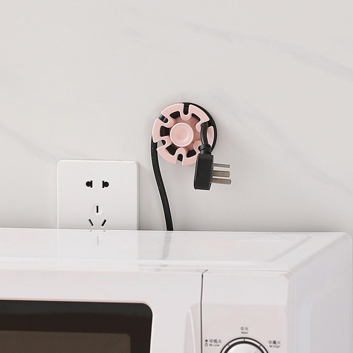 The cable winder has the function of keeping the messy wires in order to make your room and office clean and tidy. And it can also be used as a bag hanger.