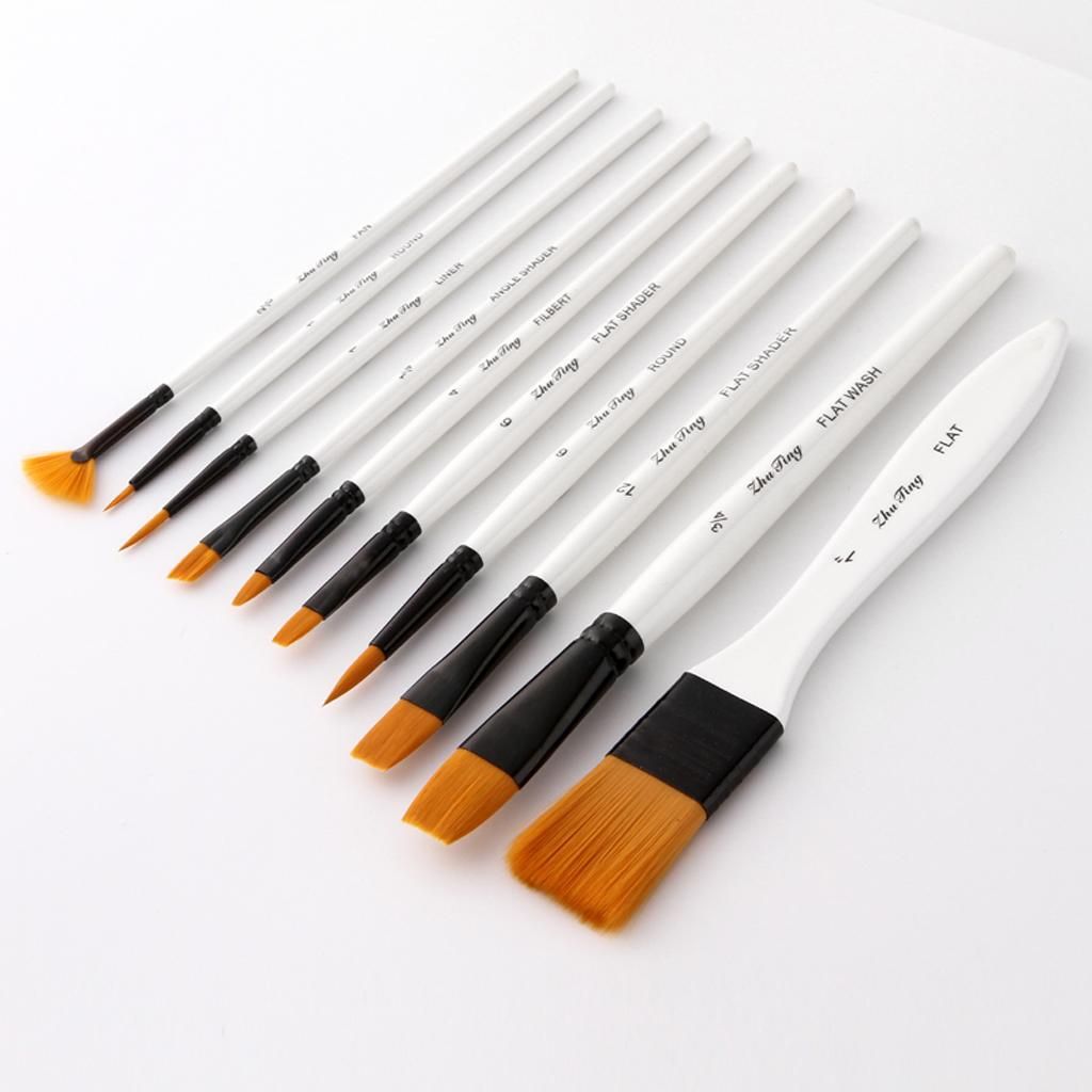 10pcs different size brushes (liner, angle shader, filbert, round, flat, flat wash, flat shader fan) set wpackage in zipper case, portable and keep your painting brushes in tidy