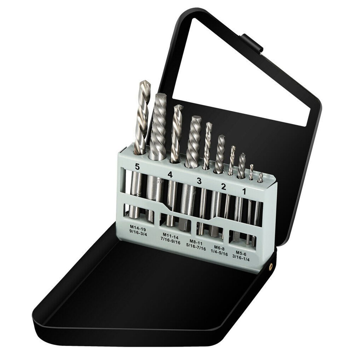 10pcs practical kit, includes 5 drilling bits and 5 screw extractors.