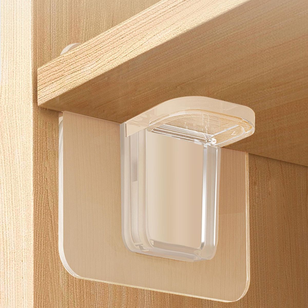 A bracket can be stuck on smooth surfaces such as glass, plastic, ceramic tiles and wood, and is suitable for wardrobes, cabinets, bookshelves and other places.