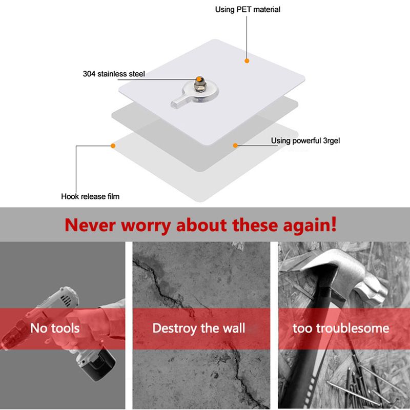 2. NO DRILLING: No drilling needed. Our self-adhesive nails will firmly stick on wall. They're great for mounting shelves, wall organizers, and kitchen racks.