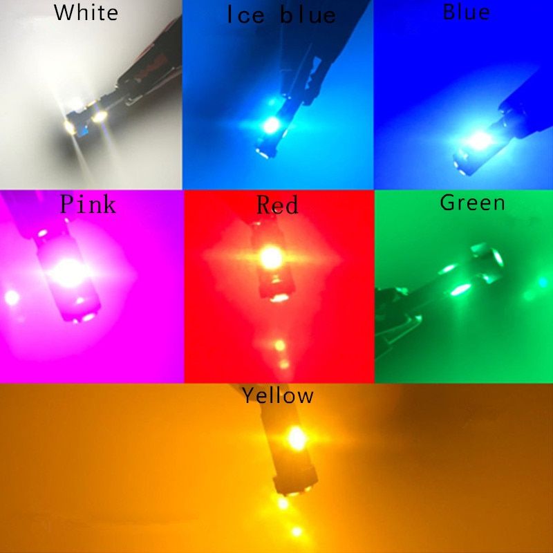 1X 10pcs T5 Car Auto 3smd 3030 Wedge LED Light Bulb Lamp Dash Board Instrument Pink Ice Blue Red Yellow Green