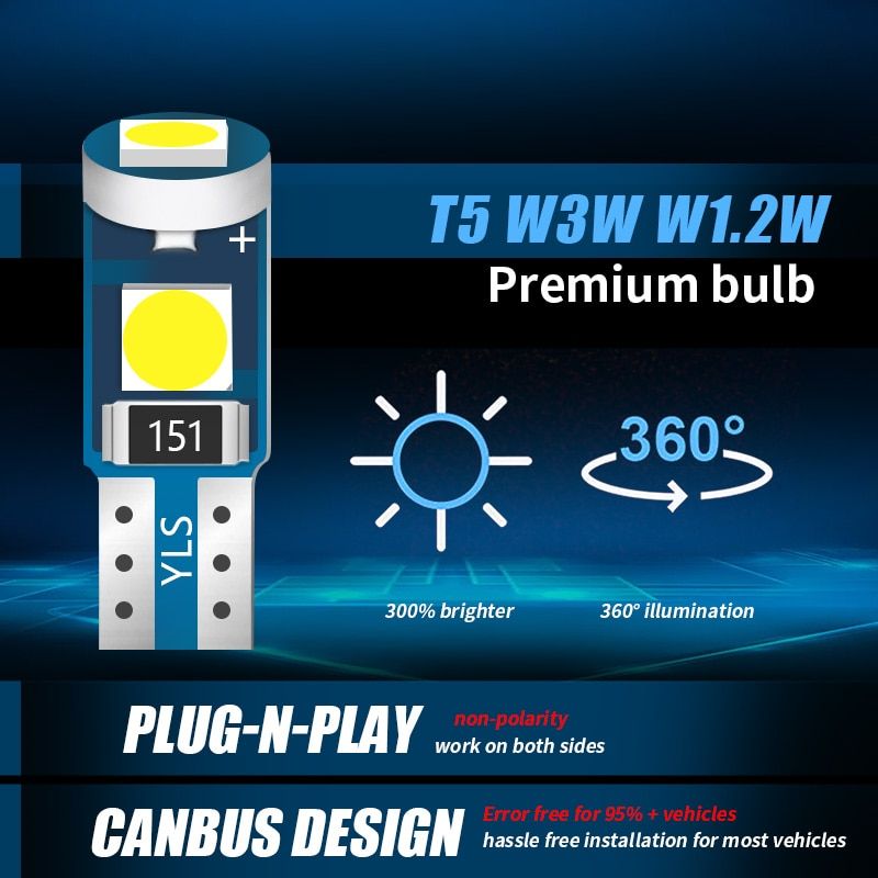1X 10Pcs T5 Led Bulb W3W W1.2W Led Canbus For Air conditioner on light Instrument LED Lights Dashboard Warning Indicator on