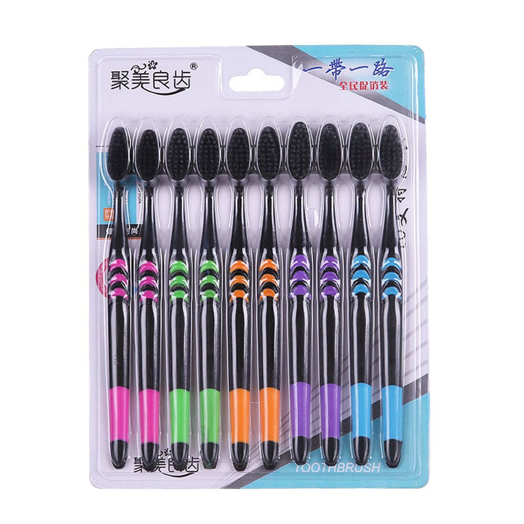 1X 10pcs Toothbrush Soft Bamboo Charcoal Adult Clean