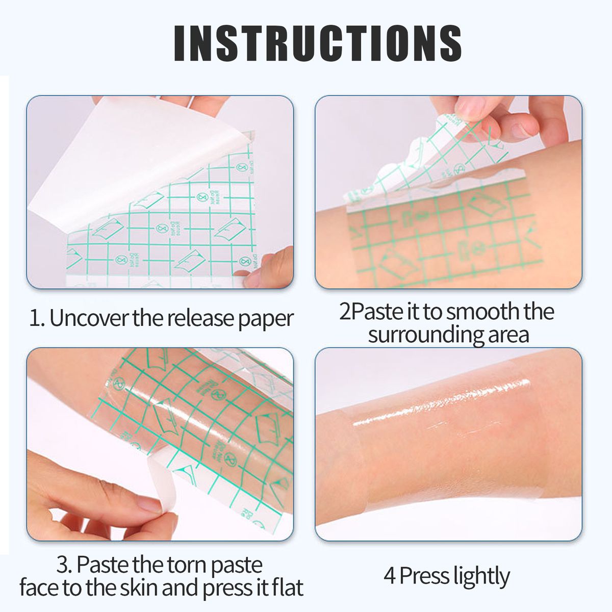 Waterproof and Practical : cover your skin from external friction and water to better grow an new intact skin; You can also use the adhesive bandage after you get a tattoo, the transparent stretch tape allows you to shower or swim as usual.