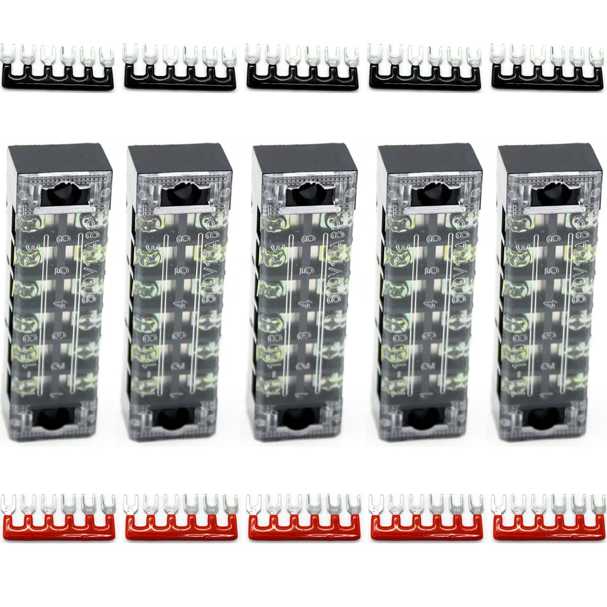 Package include: 5x6 Positions Dual Row Screw Terminal Strips,10x6 Positions Pre-Insulated Barrier Strips (Red:5,Black:5)