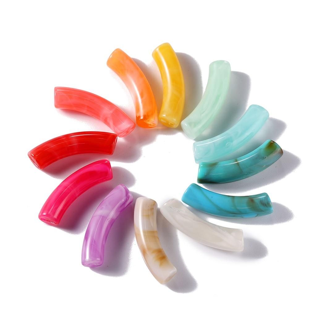 Buy 10Pcs/Lot Colorful Bent Pipe Bead Acrylic Curved Tube Beads for DIY Bracelet Pendant Jewelry Making Findings Accessories in Nigeria