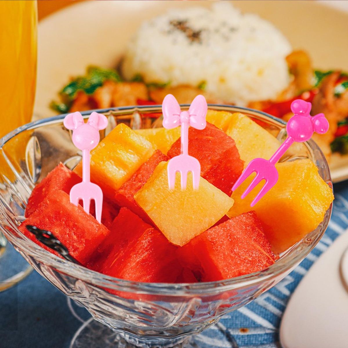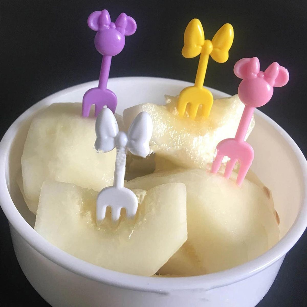 With a cartoon and cute bow and mouse shape, this fruit fork adorns your fruit tray and attracts your child's notice.