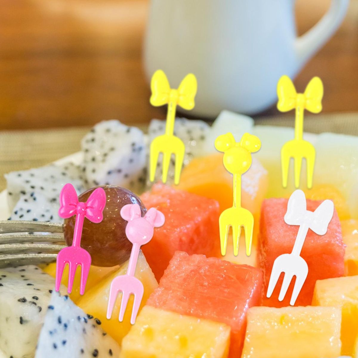 With a cartoon and cute bow and mouse shape, this fruit fork adorns your fruit tray and attracts your child's notice.