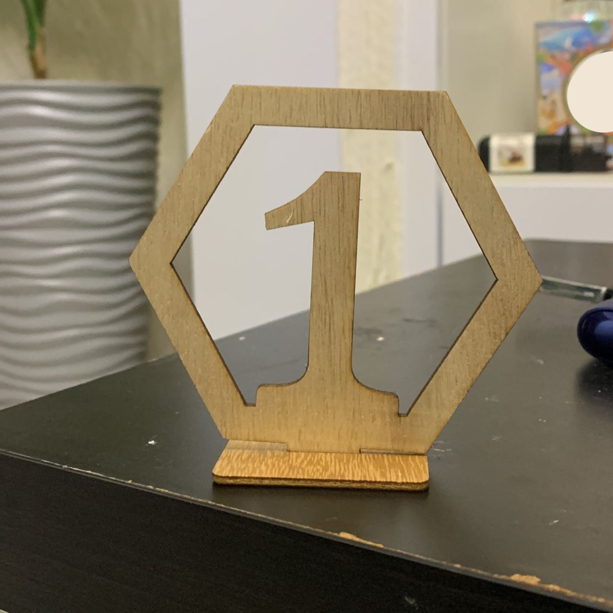 The table number sign is characterized by hexagonal shape and hollow style. Therefore, it can bring events a modern and artistic touch.