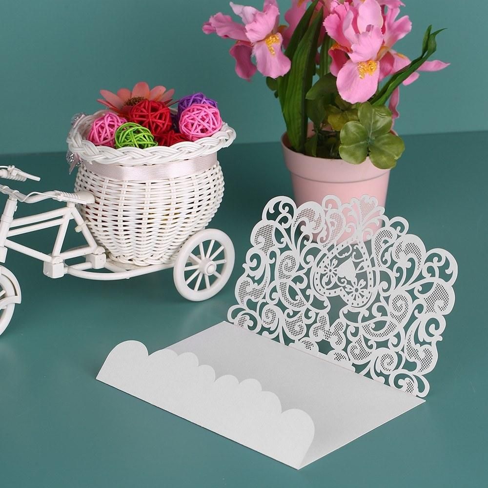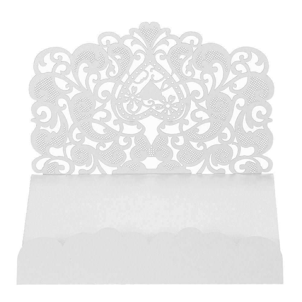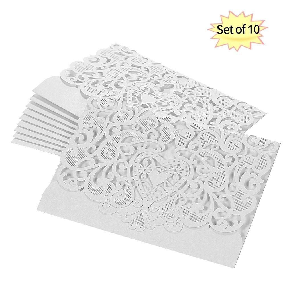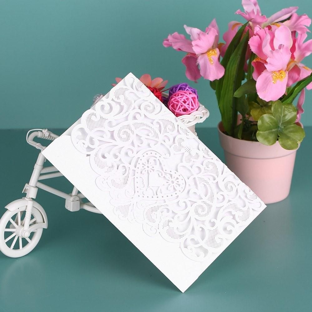 Buy 10pcs/set Wedding Invitation Card Cover Pearl Paper Laser Cut Hollow Heart Pattern Invitation Cards Wedding Anniversary Supplies--White in Nigeria