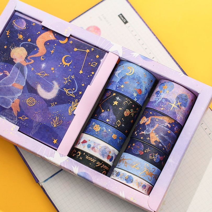 10X10 Kawaii Washi Tape Decorative Stickers Starry Sky Scrapbooking Bronzing Washi Tape Set School Supplies Adhesive Washitape
