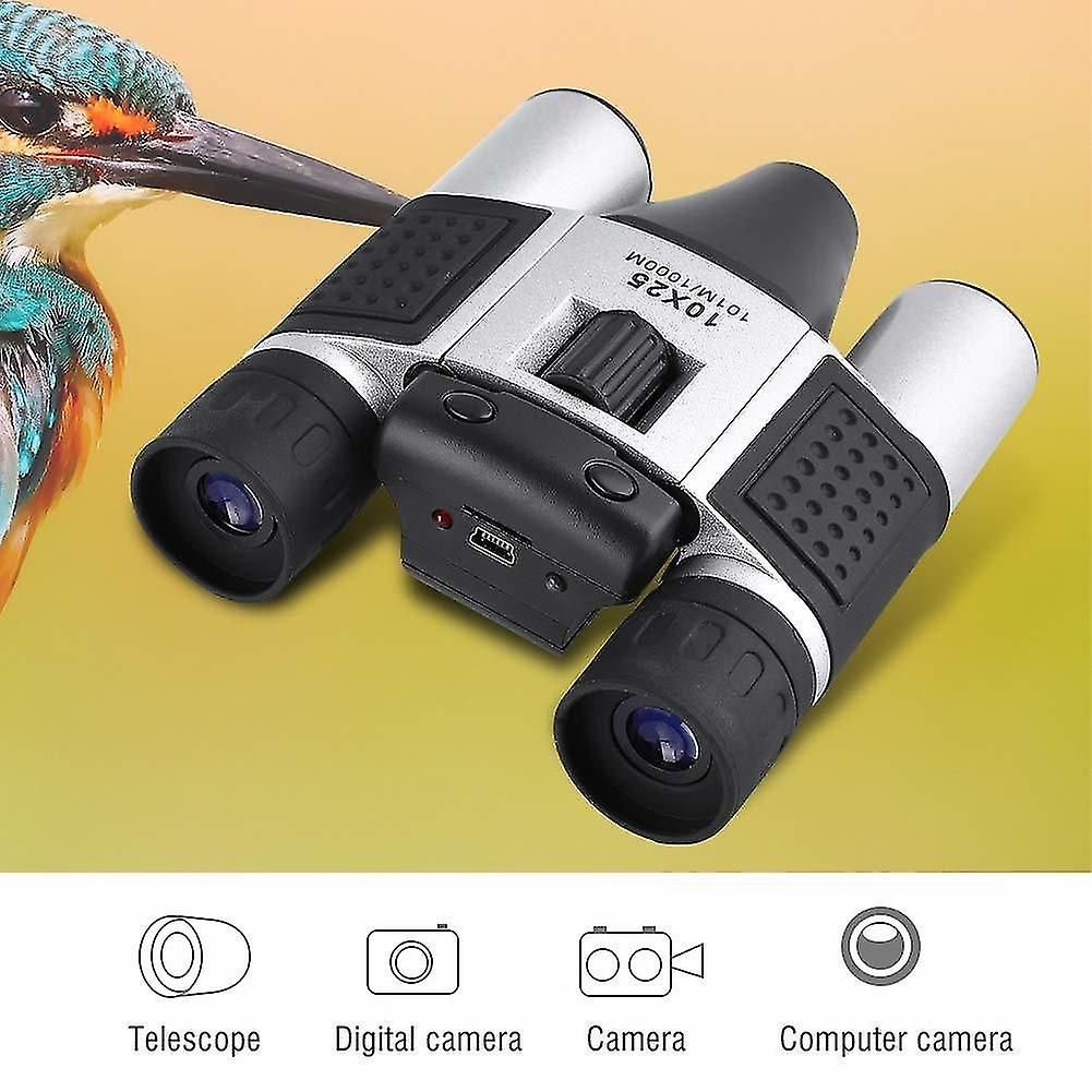 Main functions: telescope + camera + digital camera + computer camera + TF card reader.Wide Application- To meet the needs of daily use/outdoor photogarphy record/Wild Observation/Sports competition/music concert ,of binoculars.Photography Recording- You can choose photography and video recording according to your own needs.10X25 Zoom and High Resolution Performance- 10-25x zooming, clear imaging for you. With 1.3MP CMOS Sensor, 640*480 Video Resolution and 1280*960 Image Resolution Camera Digital Telescope- This portable camera telescope is made of high quality material. It can be used as a telescope or a camera. Easy to carry and use. A great choice for you. Lightweight and compact. Specification: