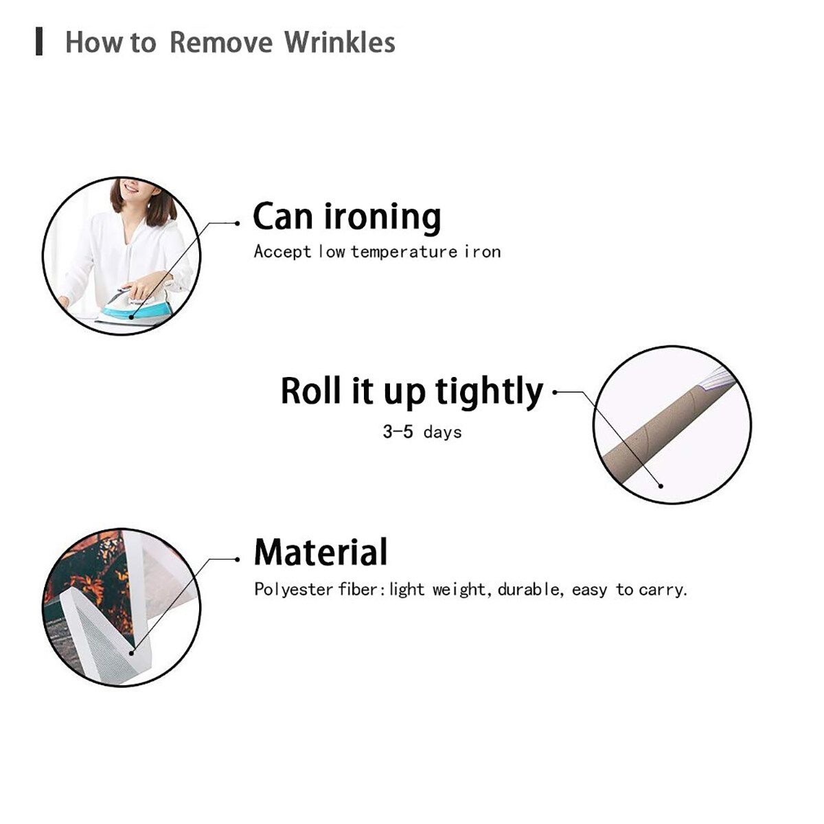 REMOVE CREASE--In order to facilitate transport and packaging, item sent folded. Resulting in crease. The recovery methods as following: Roll it up tightly with a cylinder and then just waiting for 2 to 4 days. The wrinkles and crease are almost removed. If necessary, you can iron the back surface with steam iron but not dry iron. Iron it with low heat.